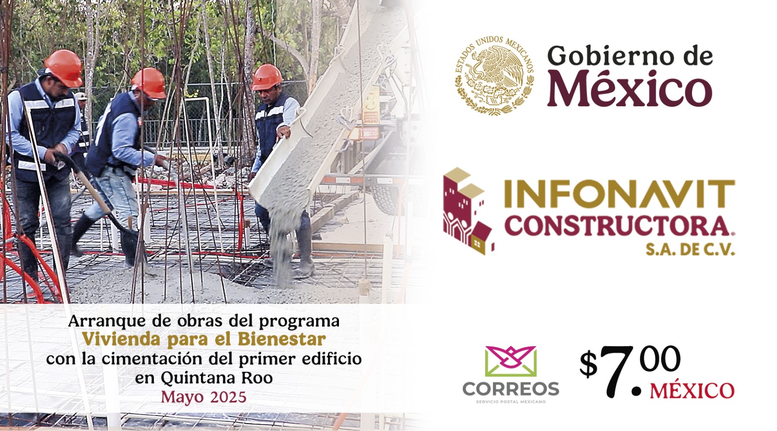 La primera estampilla, titulada “Primera cimentación INFONAVIT Constructora”, celebra la creación de INFONAVIT Constructora (INCO), una filial que surgió tras la reforma a la Ley del INFONAVIT en febrero de este año. Esta empresa tiene la misión de construir 1 millón 200 mil viviendas, beneficiando a trabajadores con ingresos entre uno y dos salarios mínimos.