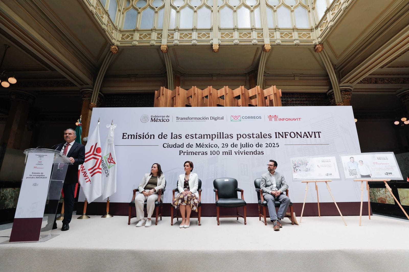 Ciudad de México, 29 de julio de 2025. — En un emotivo evento, el Instituto del Fondo Nacional de la Vivienda para los Trabajadores (INFONAVIT) y Correos de México realizaron la cancelación de dos timbres postales que conmemoran el derecho humano a la vivienda digna y la nueva política de justicia social del Instituto.