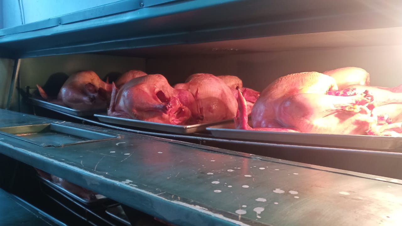 En cuanto al pavo, Ángel detalla que su preparación es diferente, ya que se rellena con carne molida, plátano macho, tocino, almendra, nuez, pasa y arándano, siguiendo una receta que ha sido perfeccionada durante los últimos años. “El pavo es casi igual, pero lleva su relleno especial. Y si el cliente lo desea, también lo entregamos horneado”, afirma.
