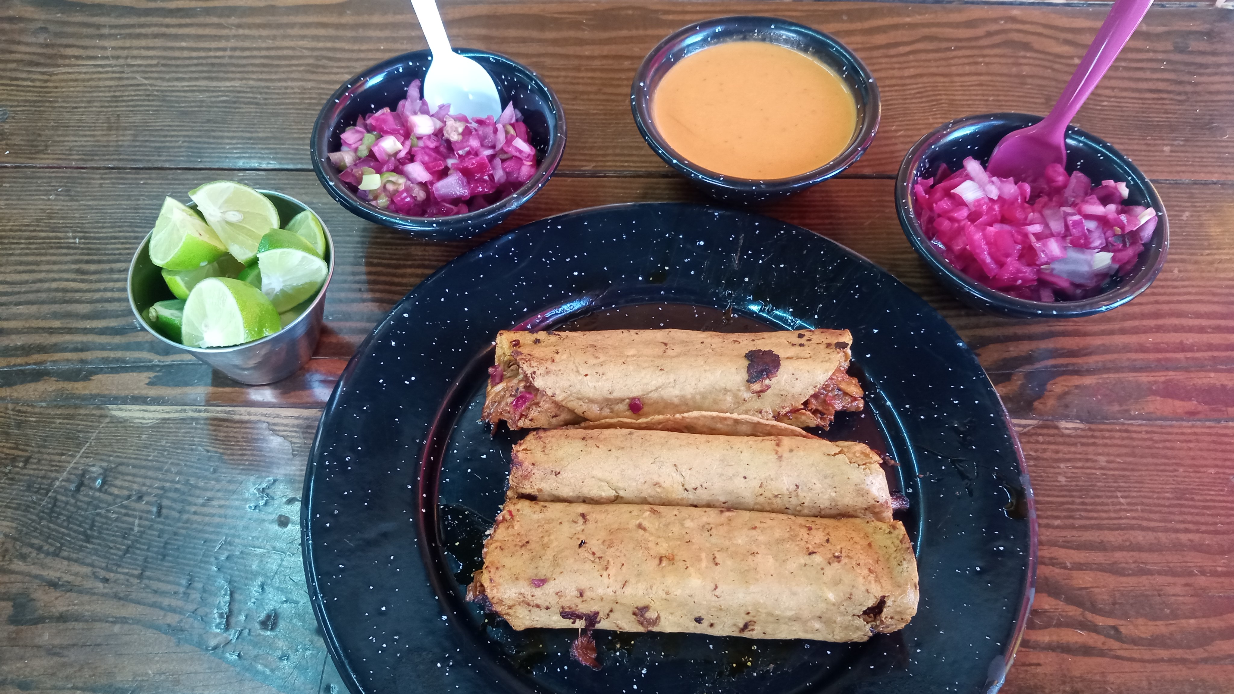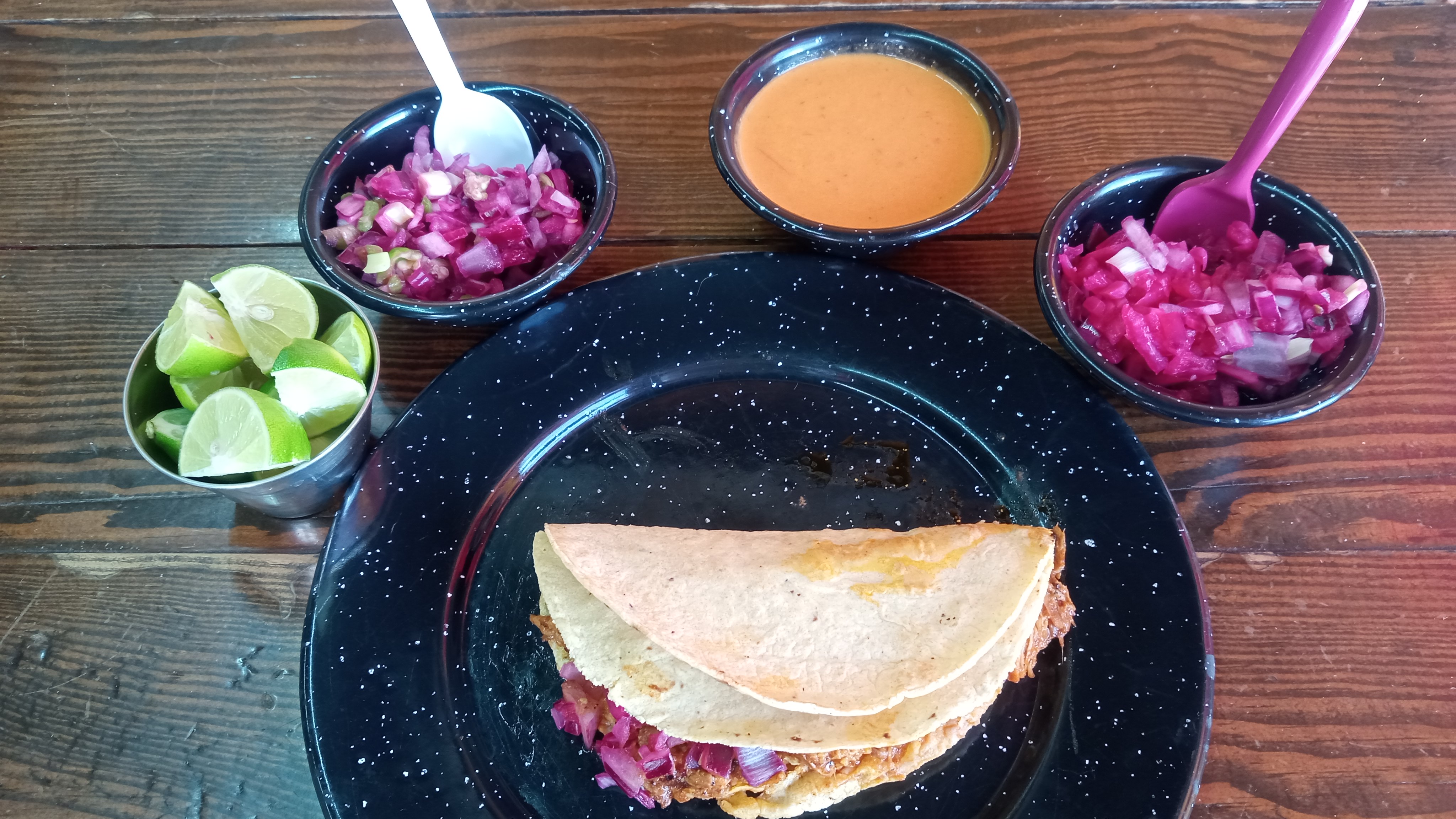 El taco se acompaña con su emblemática salsa de habanero, cebolla morada y limón, elementos tradicionales que, según explica, “hacen que amarre”.