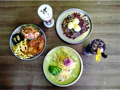 La propuesta gastronómica se centra principalmente en desayunos, siendo los chilaquiles, enchiladas suizas, pechuga empanizada y enchiladas algunos de los platillos más solicitados. También sobresalen los wraps, rollos tipo burrito rellenos de vegetales, que se han convertido en uno de los favoritos de los comensales por su sabor y balance nutricional.