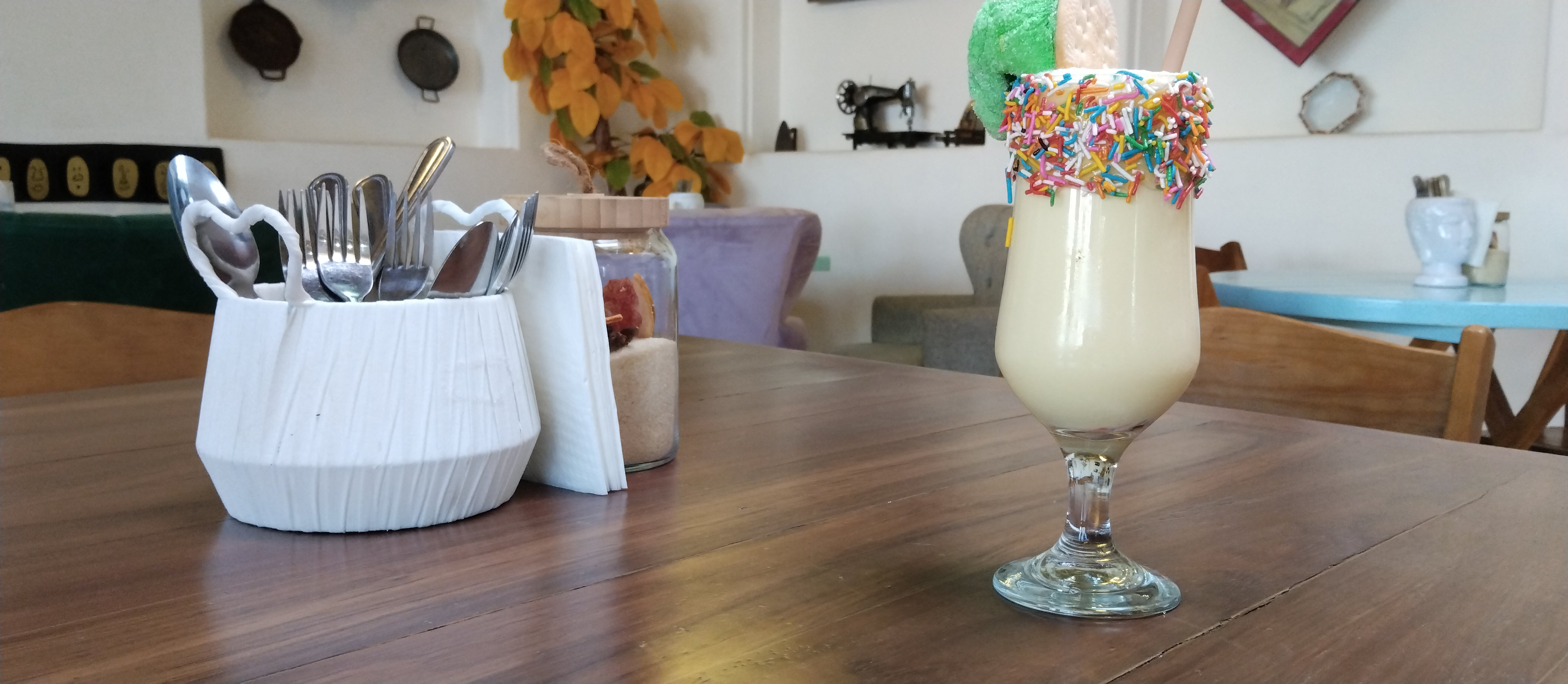 Pero Chantilly Bombón no sería lo mismo sin su propuesta de bebidas. En entrevista, Marlon, responsable del área de bebidas y sabores, detalla que el café que se sirve en el establecimiento es una mezcla de granos de Puebla, Oaxaca y Veracruz, con un tostado medio, ideal tanto para quienes se inician en el mundo del café como para paladares más experimentados.