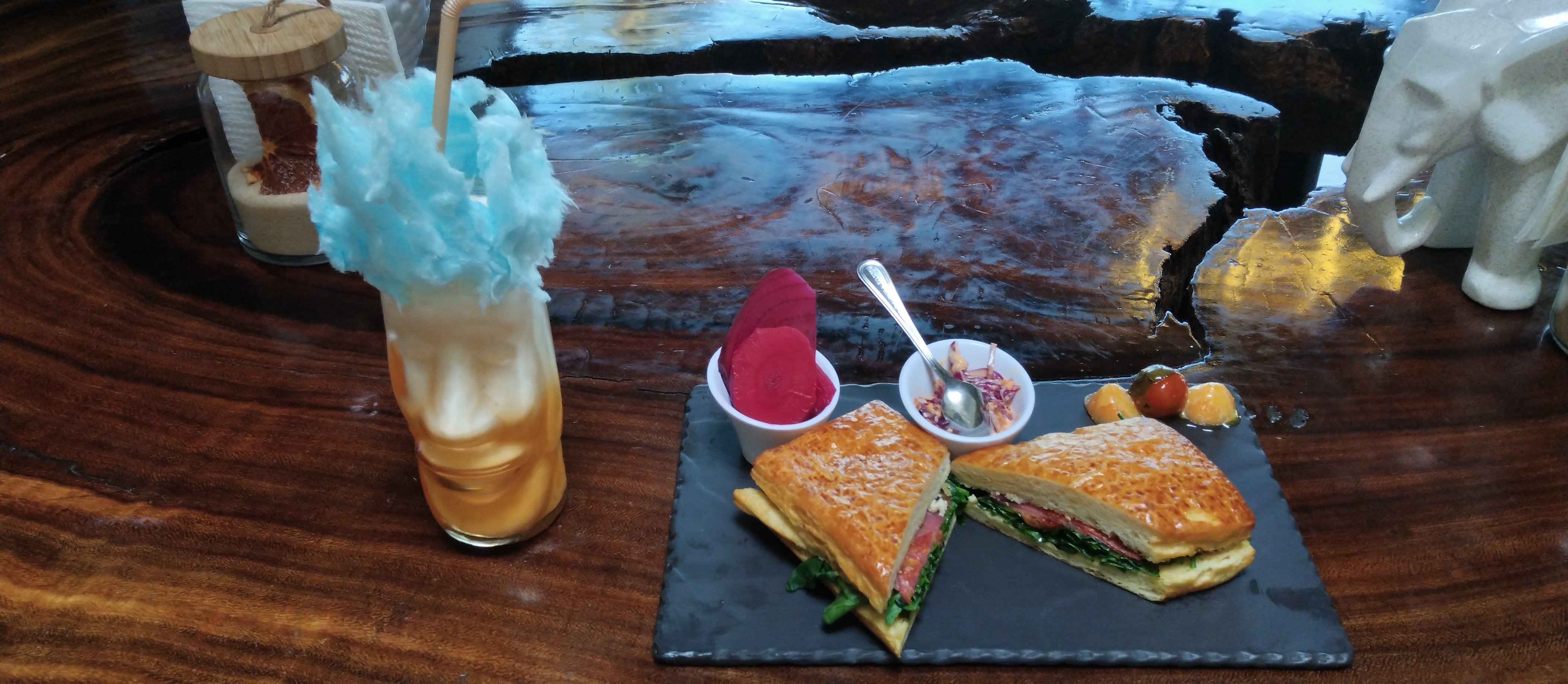 Pero Chantilly Bombón no sería lo mismo sin su propuesta de bebidas. En entrevista, Marlon, responsable del área de bebidas y sabores, detalla que el café que se sirve en el establecimiento es una mezcla de granos de Puebla, Oaxaca y Veracruz, con un tostado medio, ideal tanto para quienes se inician en el mundo del café como para paladares más experimentados.