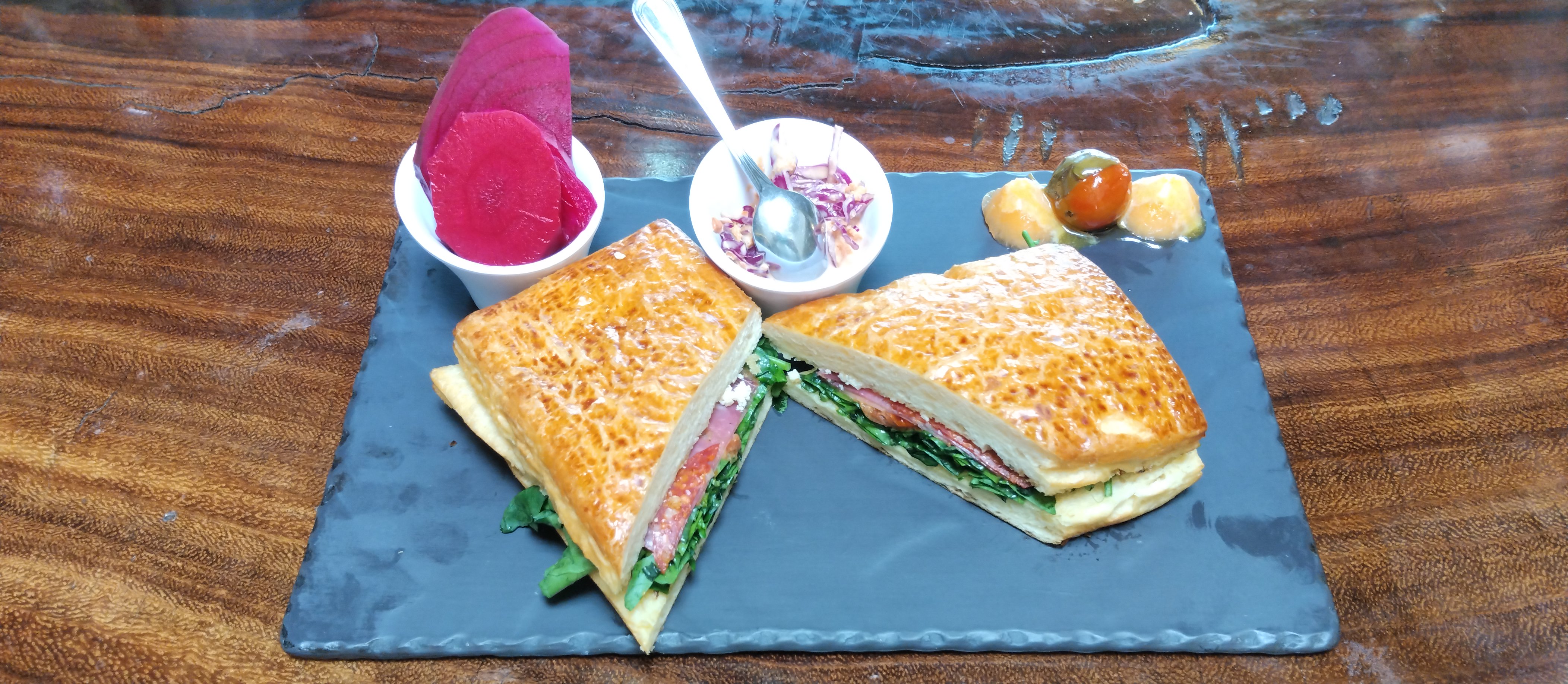 La oferta culinaria se complementa con una amplia variedad de opciones como chapatas, pepitos, choripanes y sándwiches, todos elaborados con pan artesanal horneado diariamente. Desde pan de caja hasta baguettes y pan francés, cada pieza es producida con esmero por el panadero del lugar, aportando textura, aroma y sabor a cada platillo.